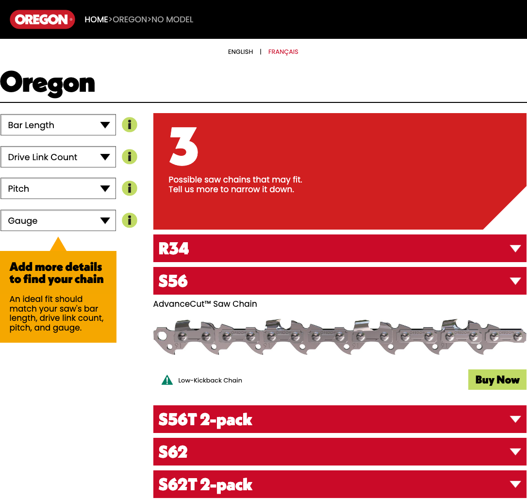 Shopper Journey research revealed that 80% of Professional users experienced friction when shopping for replacement chain saw chain.